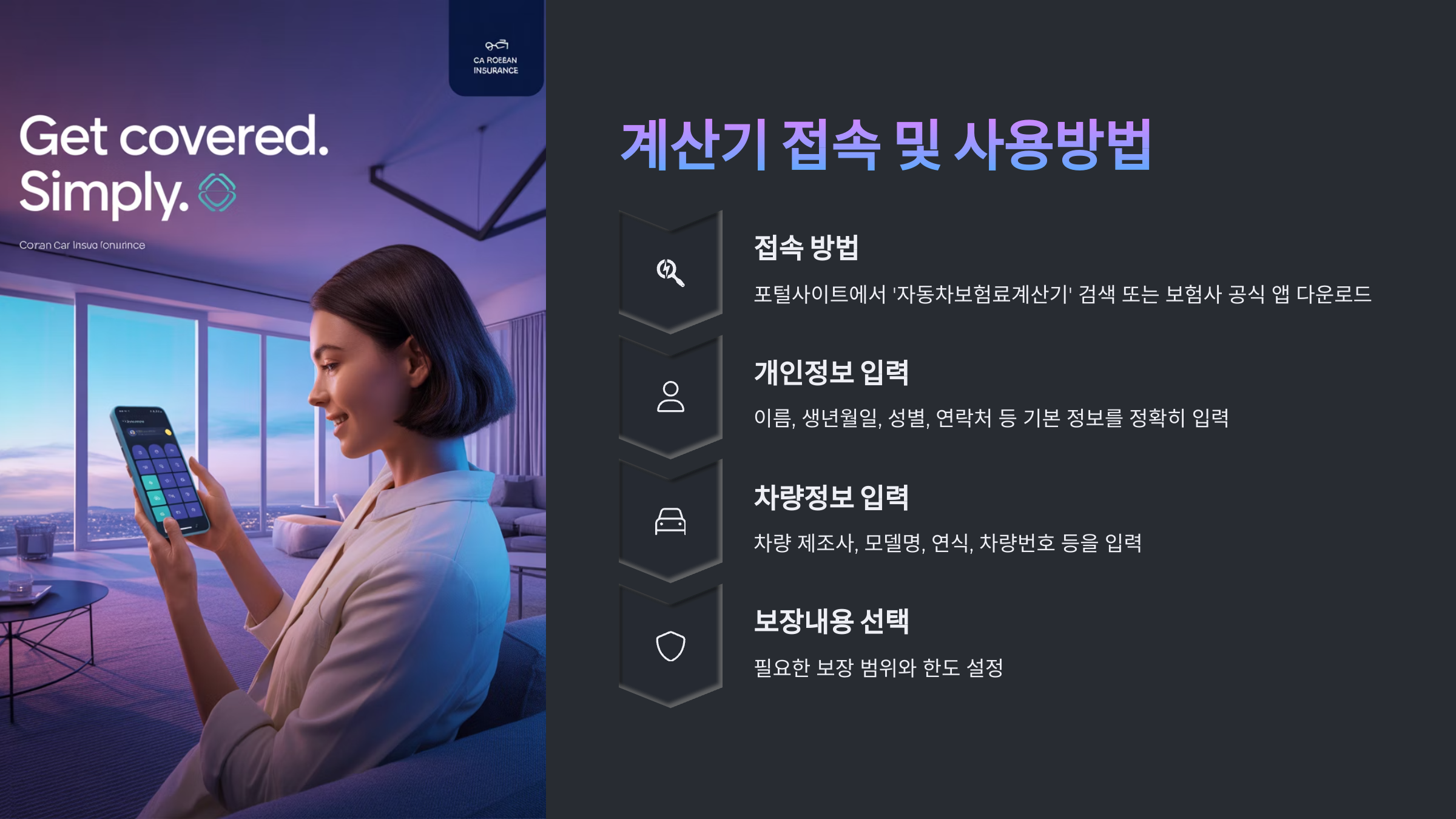| 정확한 입력 | 현재 차량 시세 확인 | 정확한 보험료 |