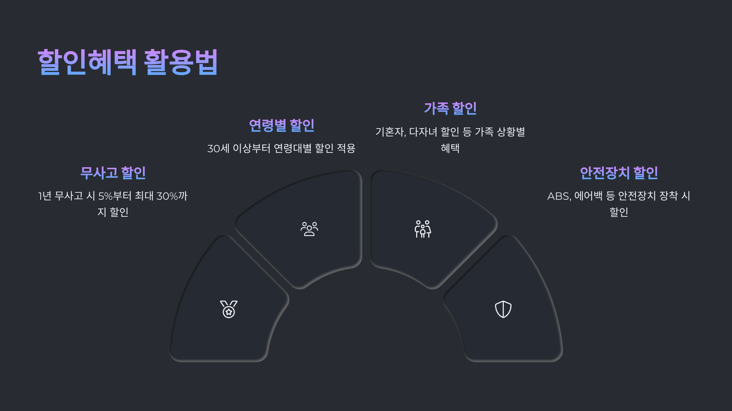 | 무사고 할인 | 최대 30% | 사고이력 없음 |