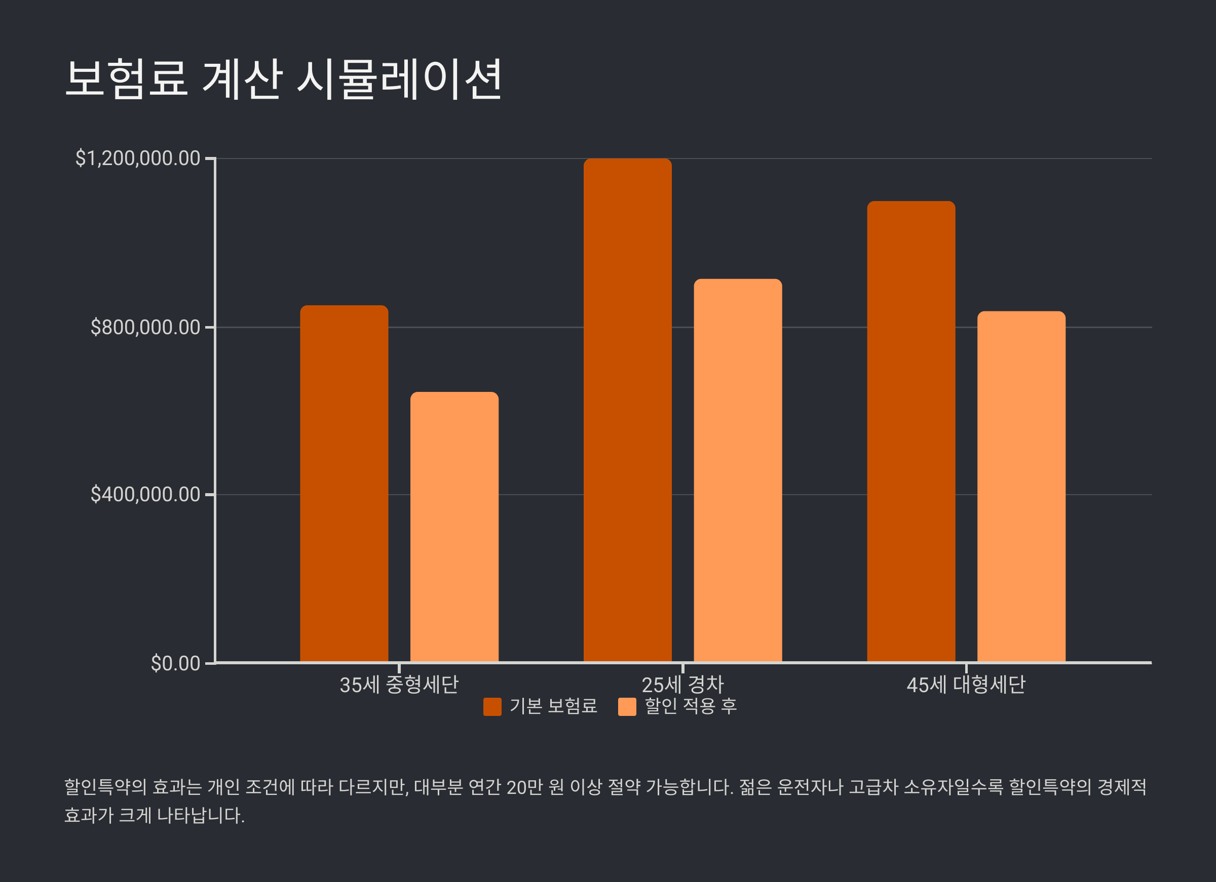 | 운전자 유형 | 기본 보험료 | 할인 적용 후 | 절약 금액 |